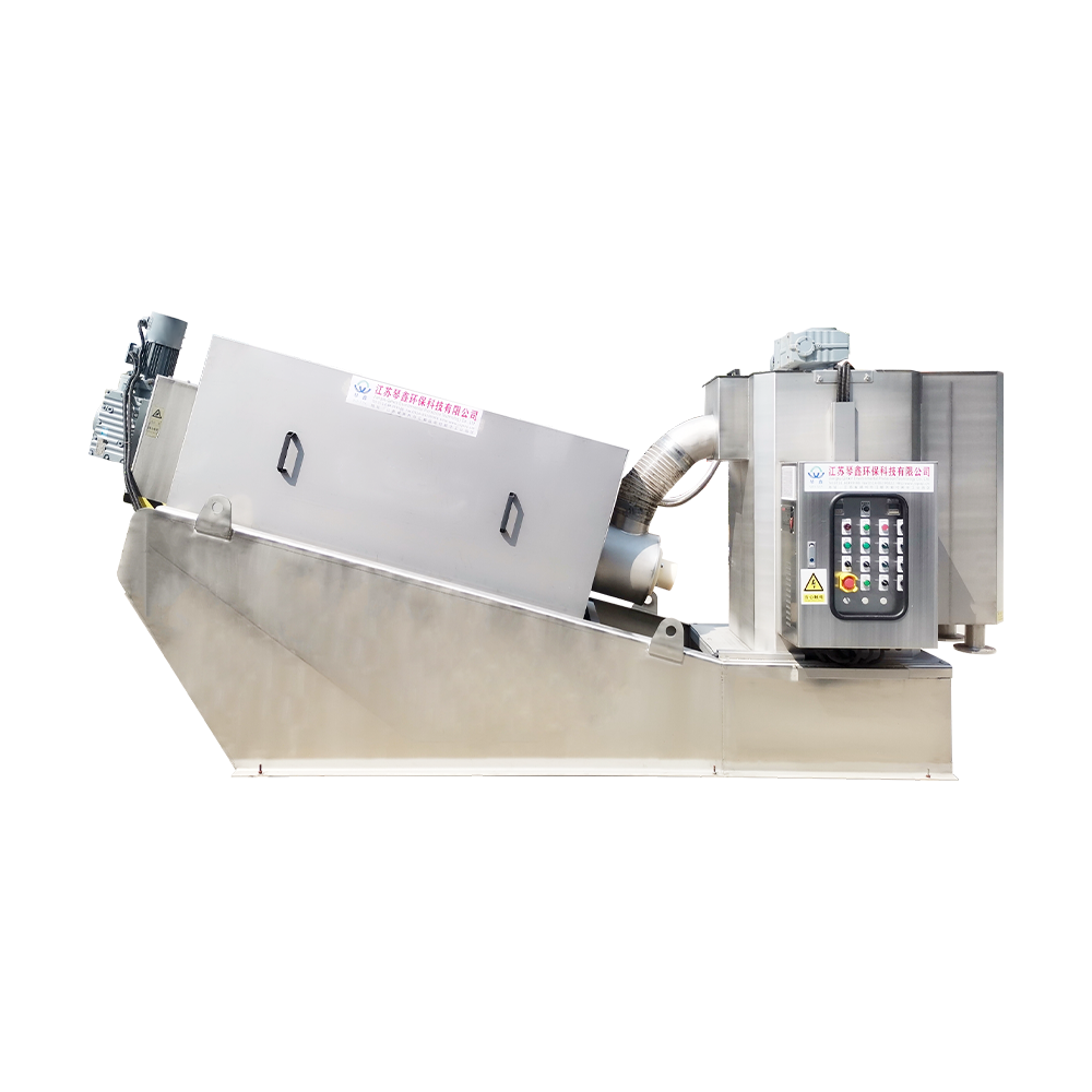 Maszyna do odwadniania osadu z prasą śrubową ściska osad za pomocą siły mechanicznej i wyciska wodę, aby uzyskać skuteczne odwodnienie osadu. Urządzenie wyposażone jest w stopniowo napinający się wał spiralny, który wypycha osad do wylotu, dzięki czemu woda zawarta w osadzie może zostać szybko odprowadzona pod wysokim ciśnieniem. W porównaniu z tradycyjnymi metodami odwadniania prasa śrubowa charakteryzuje się wyższym poziomem automatyzacji, dużą wydajnością przetwarzania i może lepiej dostosować się do różnych rodzajów ścieków zwierzęcych.